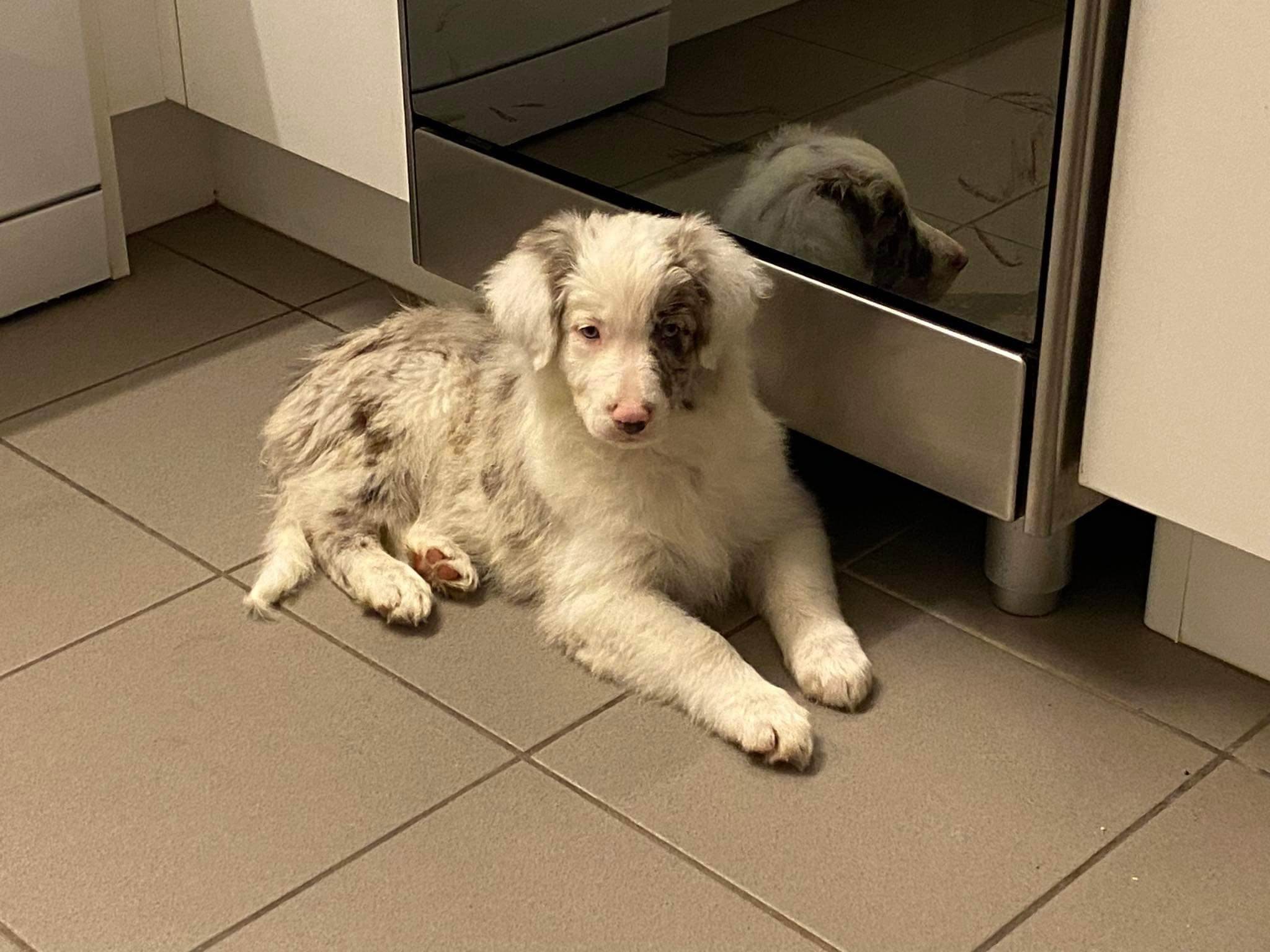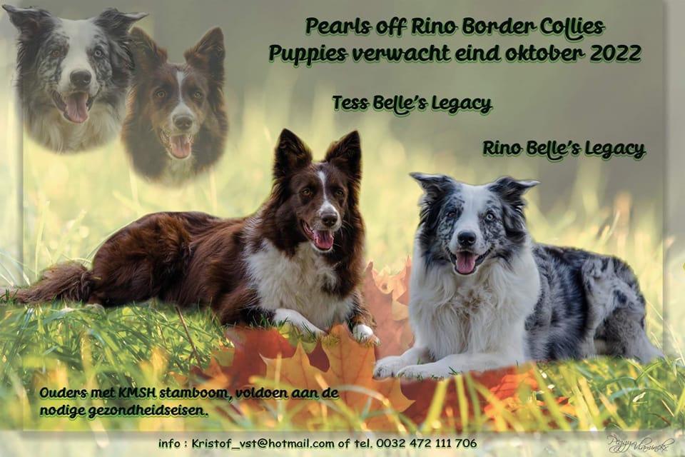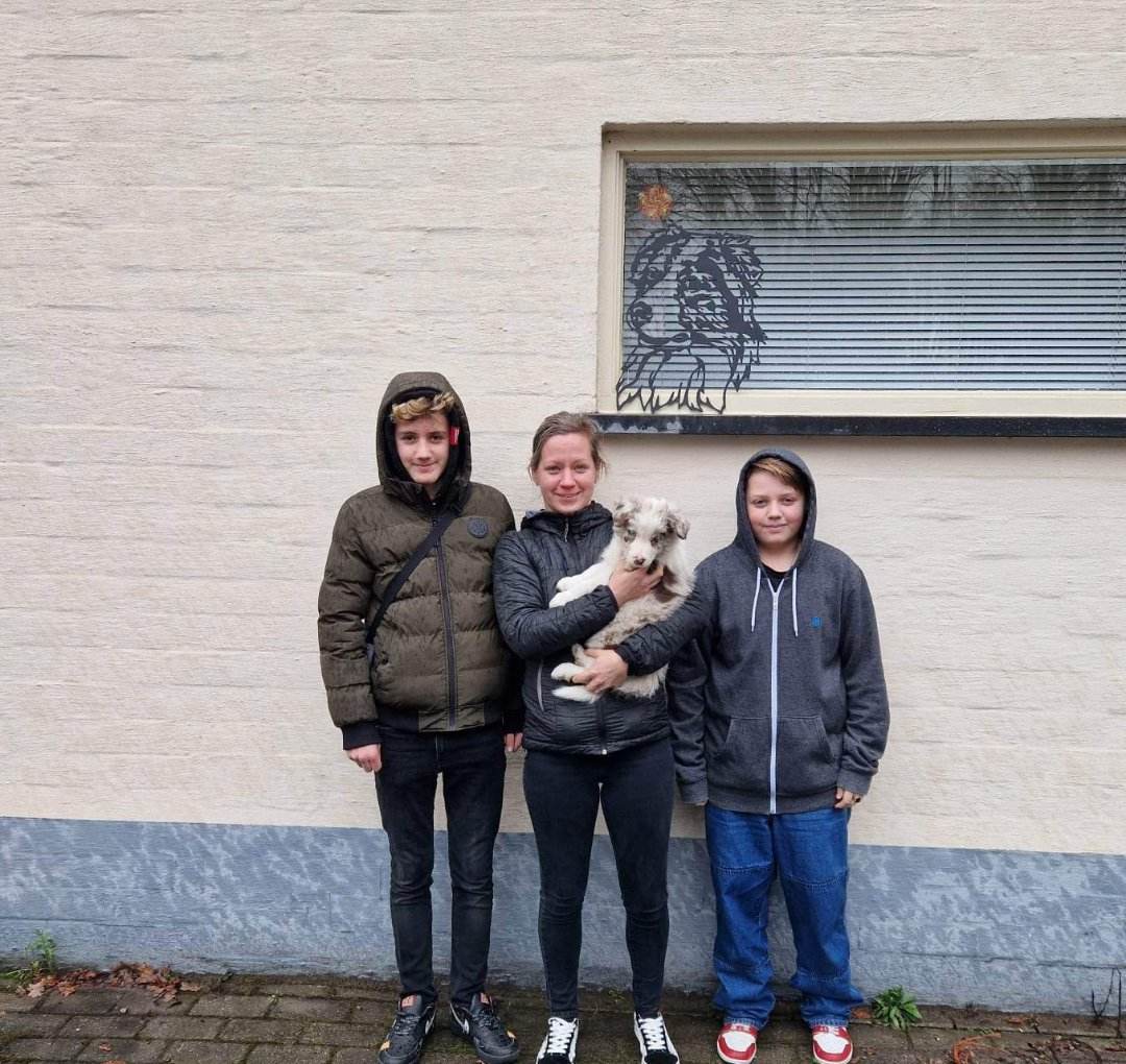 16 mei jl zijn er puppy's geboren! 1 zwart wit teefje, 1 blauw wit teefje en 2 sable reutjes.