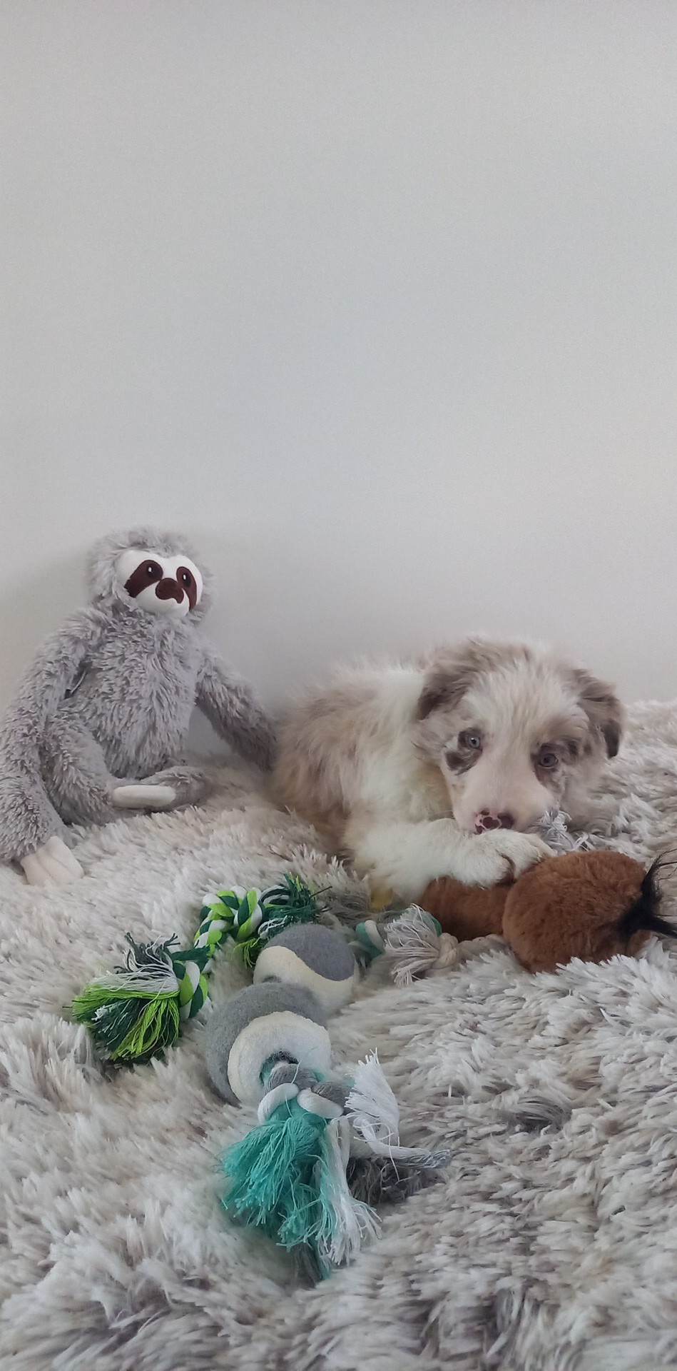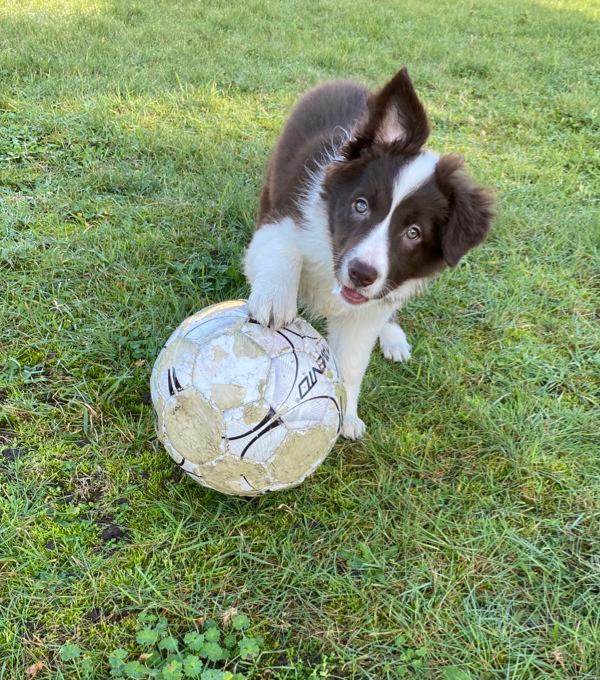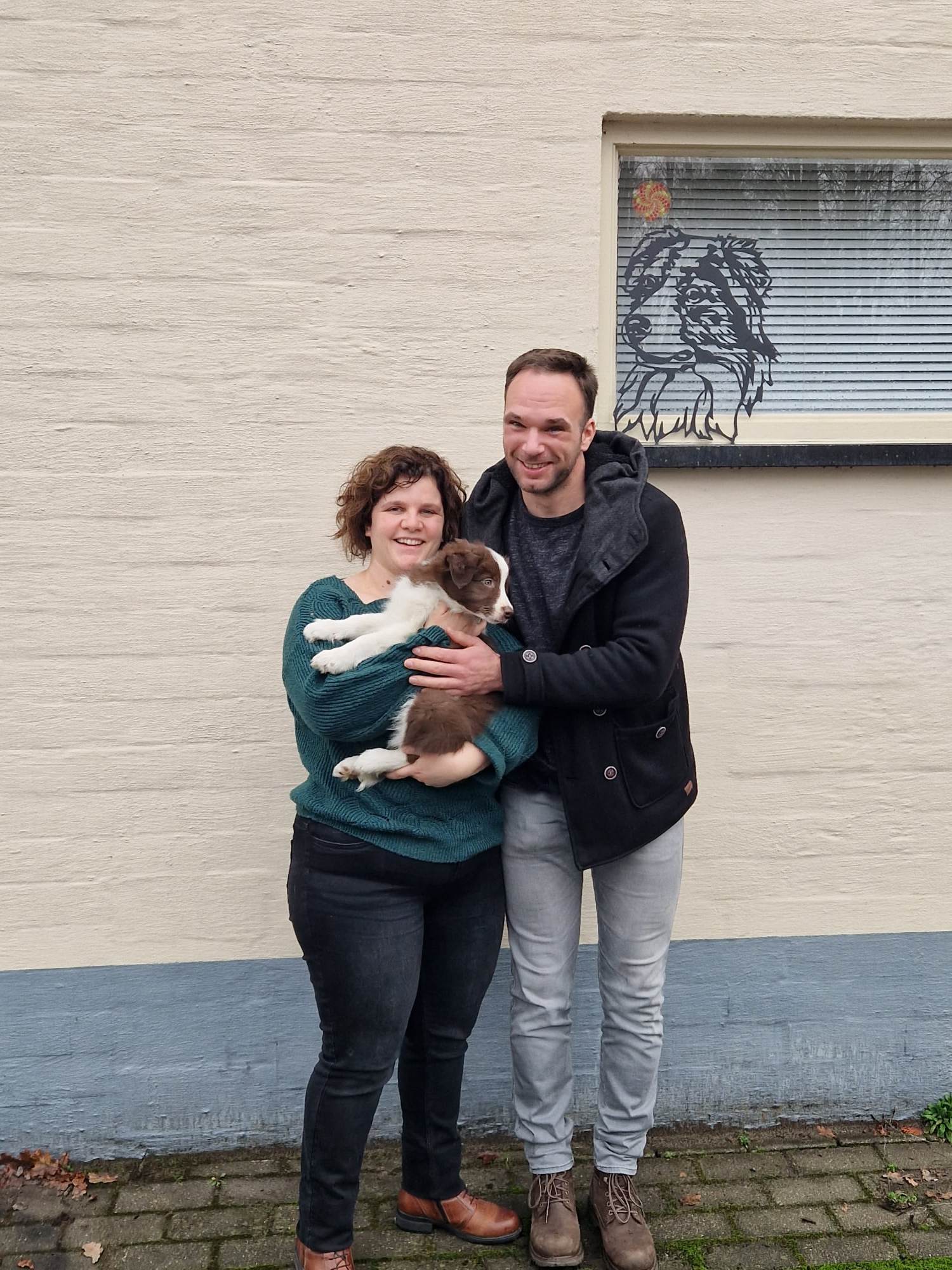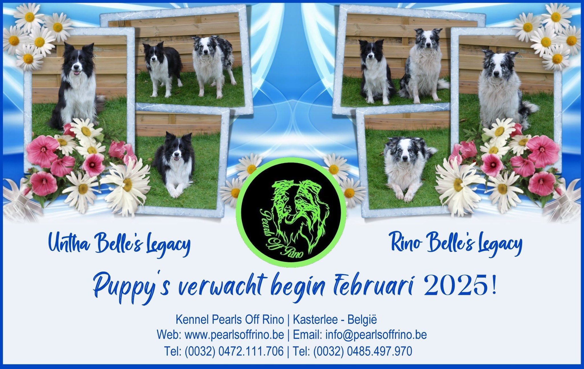 16 mei jl zijn er puppy's geboren! 1 zwart wit teefje, 1 blauw wit teefje en 2 sable reutjes.